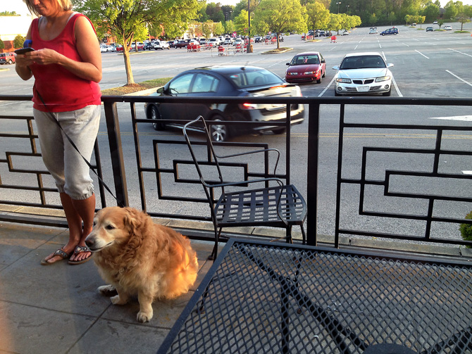Ok. It was the end of the day and I was running out of light. We were at Moe’s for dinner since it was Monday – $5.00 burritos! A must for us. Anyway, while standing in line, I noticed a woman using her phone outside holding a leash. Hmmm. I knew something cute had to be on the other end – I was not disappointed. The expression on this dog’s face is priceless.