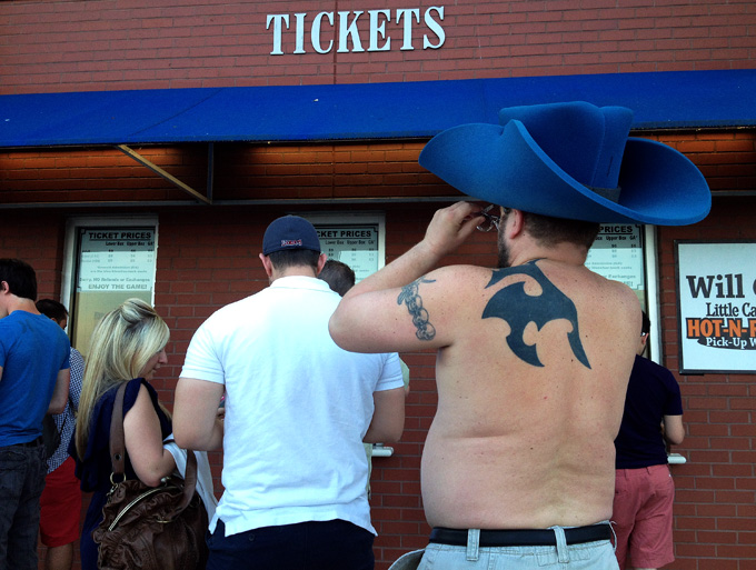Today is our anniversary, so Joe and I went to dinner at Boccaccia after work and then to a Chattanooga Lookouts baseball game. This is where we found our fellow baseball fan.
