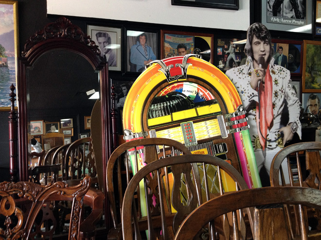 031113_106ElvisJukeboxRWe went to Dwight’s Swap Shop today just to look around for a minute. It was very interesting and slightly scary at times. But I liked this so-called Elvis corner, so I decided to make it my snapshot of the day.