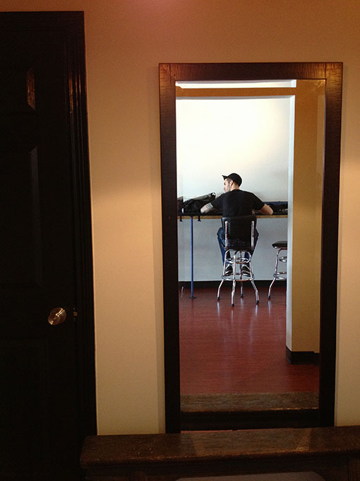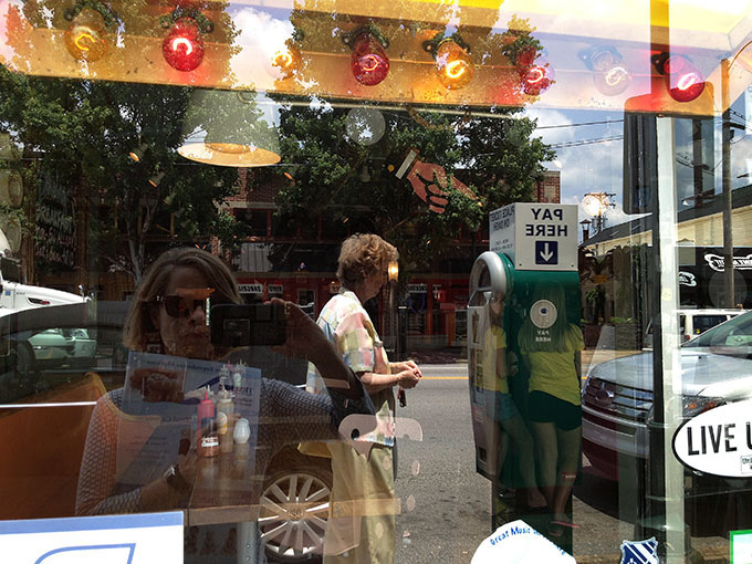 I walked through the Stone Cup coffee shop today to get from Coolidge Park to Frazier Avenue when I saw this guy’s reflection and couldn’t resist taking his photo.