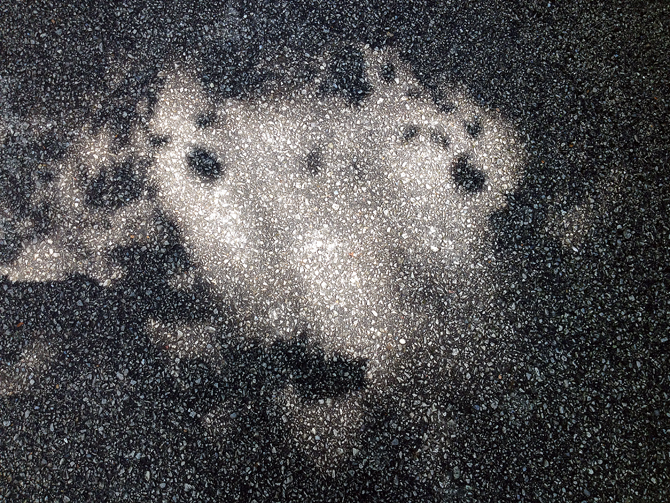 Joe and I went for a 3-mile walk today around our neighborhood and we came across this face in the shadows. I thought it was pretty cool, so I shot a photo.