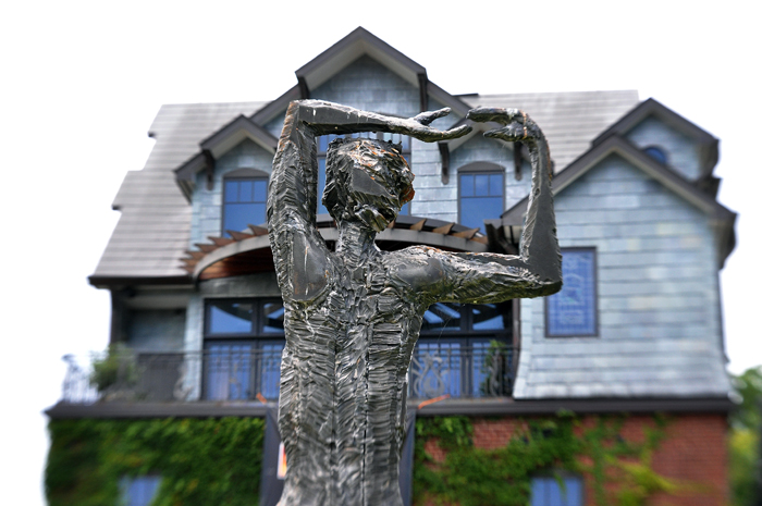 I had some extra time today, so I went to the River Gallery Sculpture Garden and found this lovely sculpture – “Amazon with Sacred Geometry,” Steel, $28,00 – by Russell Whiting.