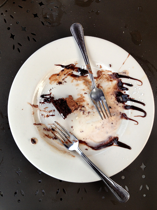 We all split this chocolate dessert, but Joe and I kept pushing the last bite back and forth: “You eat it!” “No, YOU eat it.” As if one more bite was going to wreck our diets.