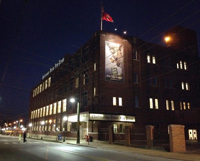 Leaving Work – Snapshot of the Day, No. 321 Posted bylewstoriesDecember 13, 2013Posted inPhotographyTags:Chattanooga Times Free Press, Night photography, Street scene I’m thankful for my job. And most of the time I have fun. But I can’t believe I’ve worked in this building for close to 30 years. Wow. Share this:Tweet Click to print (Opens in new window) Print Like Loading... Related